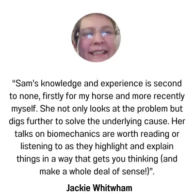 “Your explanations are easy to understand and I am enjoying finding out things that I hadn’t even considered. It has also made me focus and be a bit more consistent in my approach to movements that I may ask of my horse.”