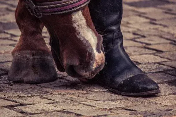 An insightful equine attempting boot heel removal! - Image by a Different Perspective from Pixabay